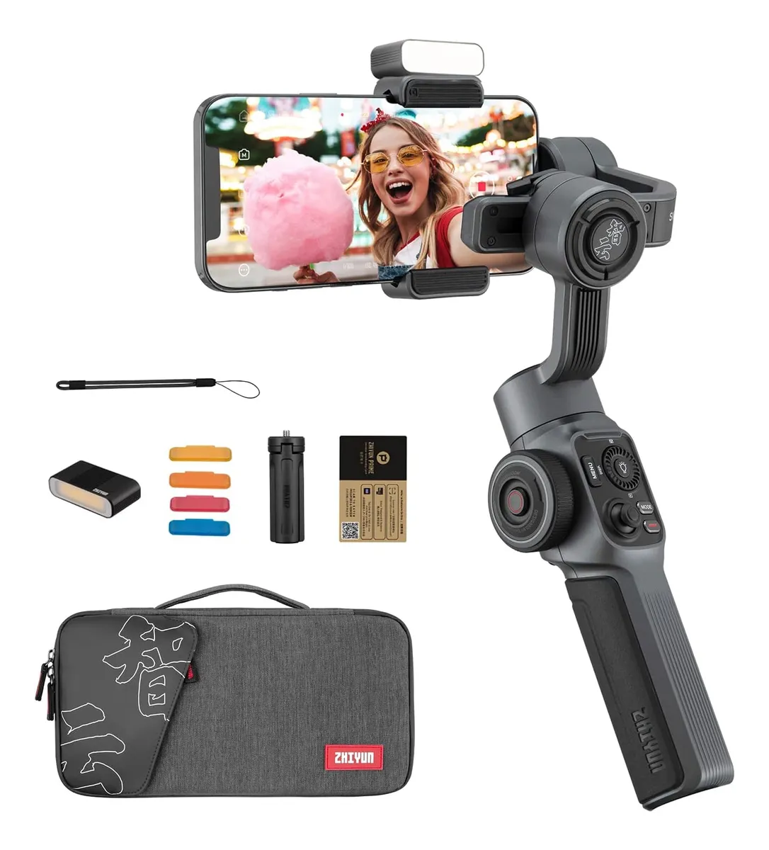 • Estabilizador de 3 ejes para smartphones con motores potentes y control total de enfoque y zoom.